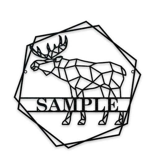 Elevate your home decor with our exquisite Personalized Geometrix Moose Metal Sign. Crafted with precision and brilliance, this unique piece is customizable with your chosen name and brings a touch of sophistication to any space. Make a statement and elevate your style with this exclusive piece.