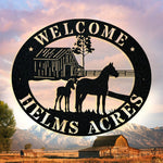 The horseshoe welcome sign is a custom metal sign designed to showcase your family name while offering a warm greeting in true farm style decor. This personalized welcome sign features a durable powder coated finish that protects it from the elements, making it perfect as outdoor metal sign or front door decor. Crafted to last, this family name sign adds rustic charm and western home decor flair to any porch, entryway, or dining room. With precise craftsmanship and a monogram wall art style, it brings both beauty and durability to your home.