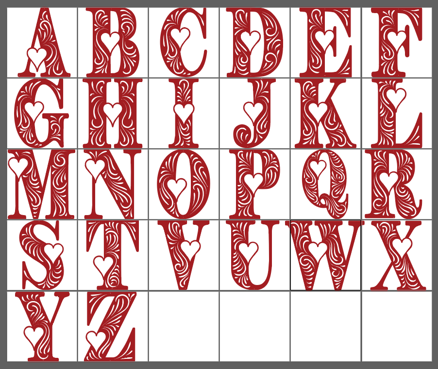 Alphabet Valentine Stripe Heart Individual Letters