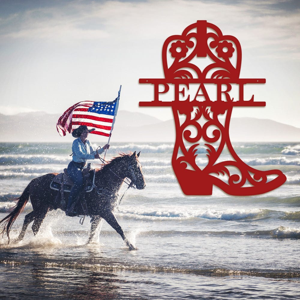 Extend a friendly greeting with this Custom Cowboy / Cowgirl Boot Monogram sign. Friends and family will get a kick out of this new design on your front door, porch, dining room, barn, or entryway and welcome guests in true farm style.