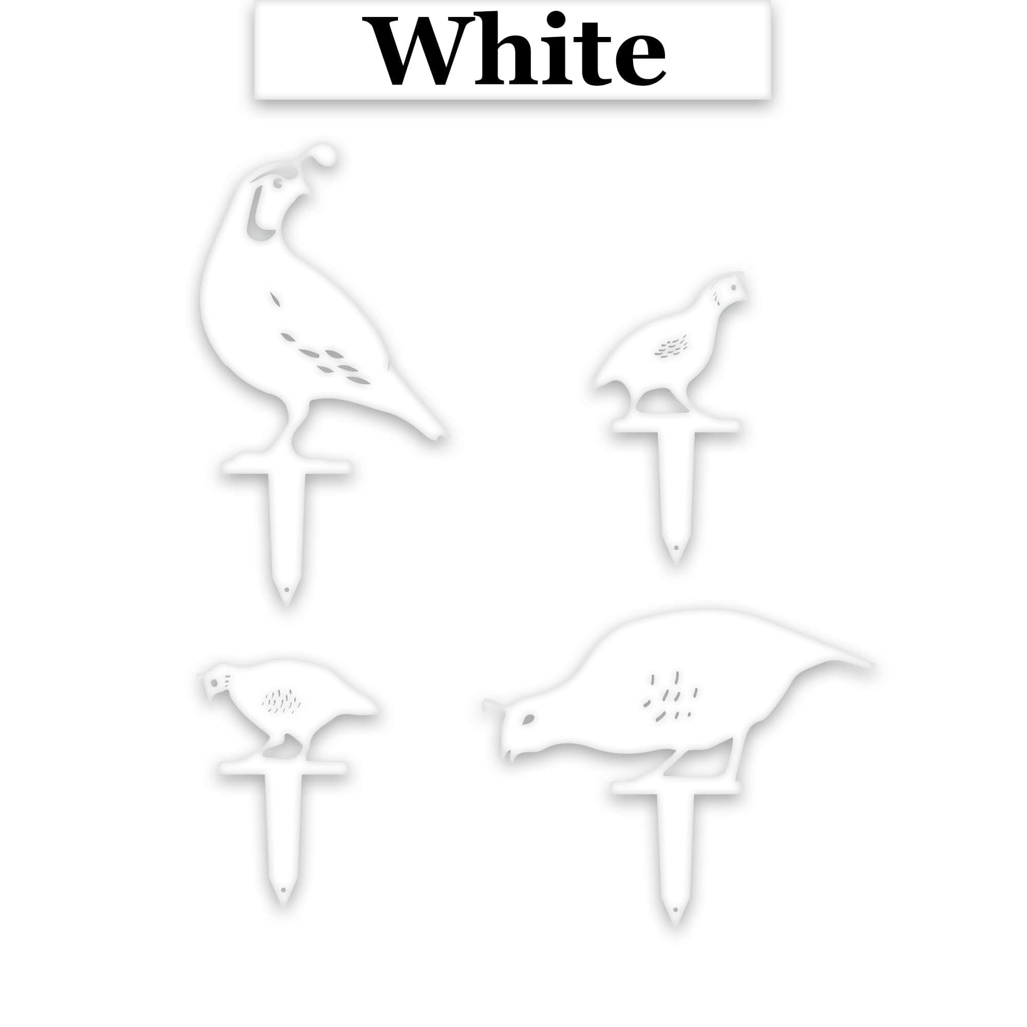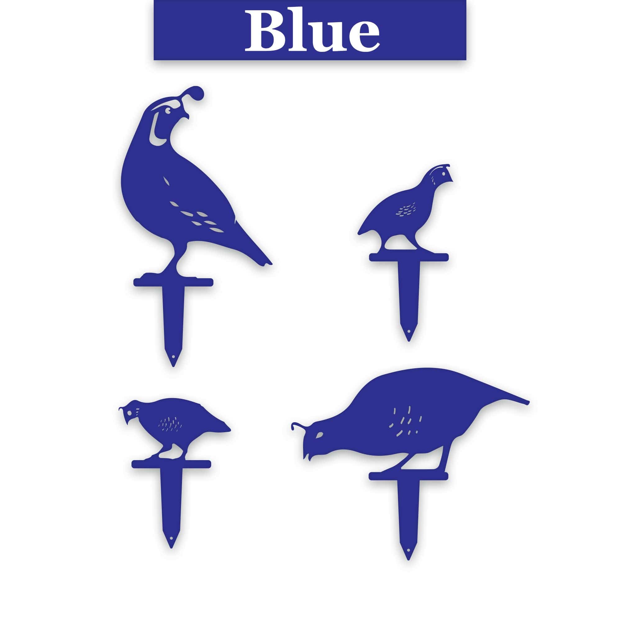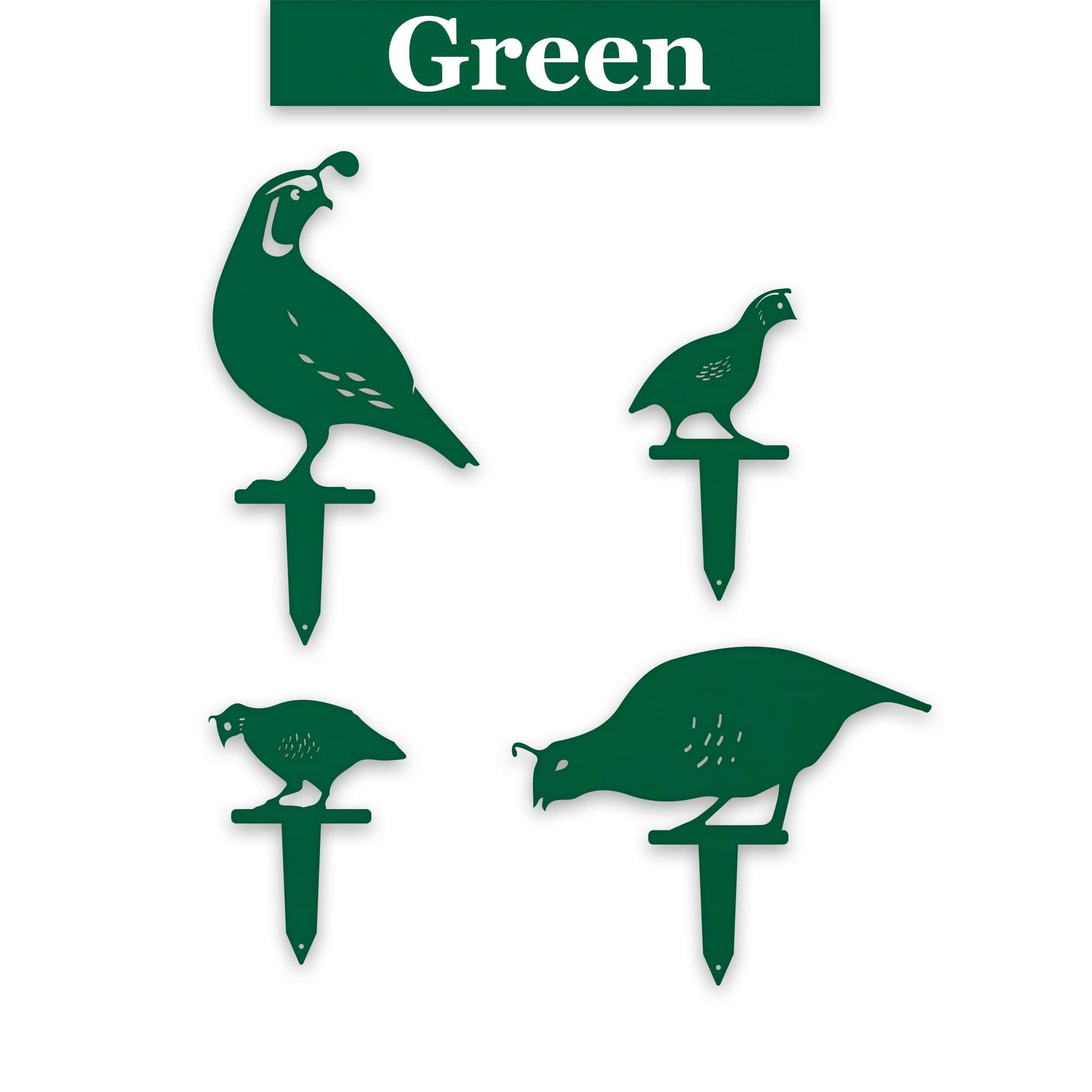 Sizes of Quails vary from 9.5 inches to 17.5 inches tall, which includes the stake.